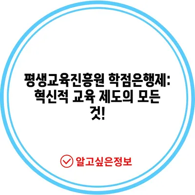 평생교육진흥원 학점은행제: 혁신적 교육 제도의 모든 것!