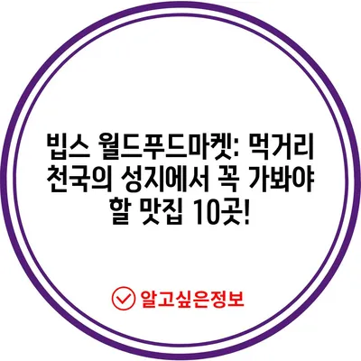 빕스 월드푸드마켓: 먹거리 천국의 성지에서 꼭 가봐야 할 맛집 10곳!