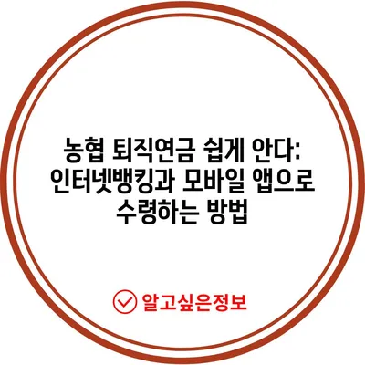 농협 퇴직연금 쉽게 안다: 인터넷뱅킹과 모바일 앱으로 수령하는 방법