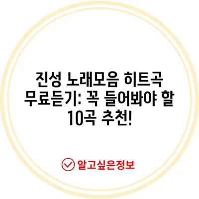 진성 노래모음 히트곡 무료듣기: 꼭 들어봐야 할 10곡 추천!