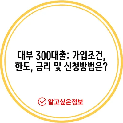 Meta Description: 대부 300대출 가입조건, 대출한도, 금리, 신청방법에 대해 자세히 알아보세요. 다양한 조건의 고객이 이용 가능한 금융 상품입니다.