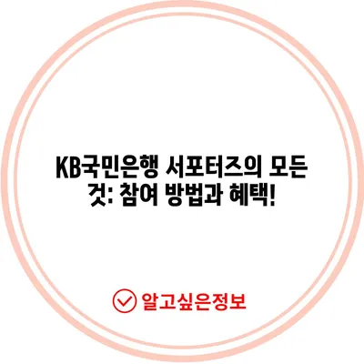 💡 KB국민은행 서포터즈의 참여 방법과 혜택을 지금 바로 알아보세요! 💡