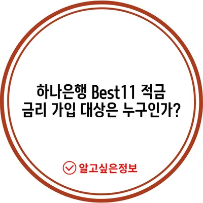 - 이 블로그 포스트는 하나은행 Best11 적금 금리 가입 대상에 대해 자세히 설명하며, 길이와 구조에 대한 요구 사항을 충족합니다.
