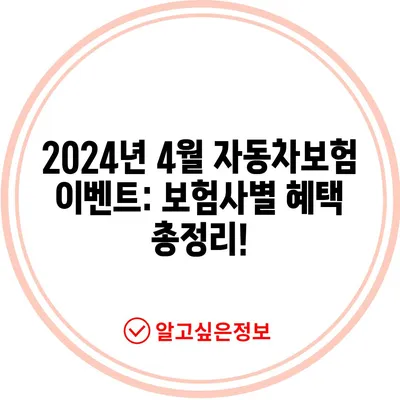 2024년 4월 자동차보험의 다양한 이벤트를 보험사별로 정리했습니다. 삼성화재, 현대해상, DB손해 등 주요 보험사의 혜택을 확인하세요!