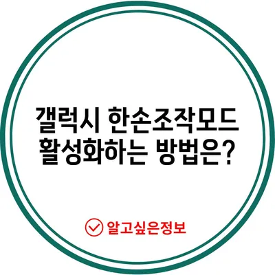 💡 갤럭시 한손조작모드를 쉽게 설정하는 방법을 알아보세요. 💡