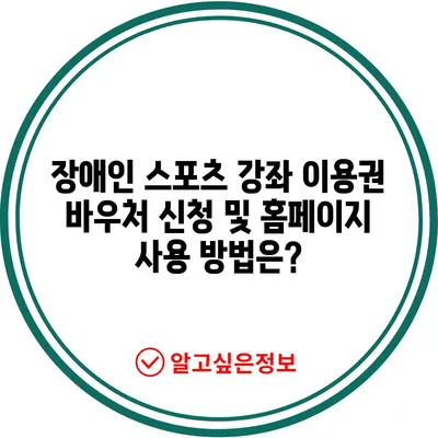 💡 장애인 스포츠 강좌 이용권의 모든 정보를 지금 바로 알아보세요! 💡