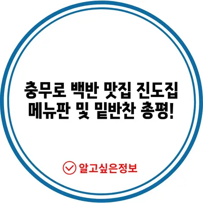 💡 진도집의 맛있는 백반 메뉴와 숨겨진 밑반찬의 비밀을 알아보세요. 💡