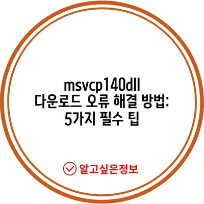 💡 msvcp140dll 오류를 해결하는 방법을 지금 바로 알아보세요. 💡