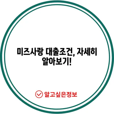💡 미즈사랑 대출조건을 상세히 알아보세요! 💡
