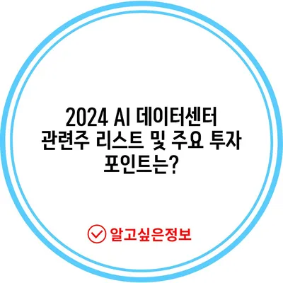 💡 2024 AI 데이터센터 관련주 투자 전략을 알아보세요. 💡