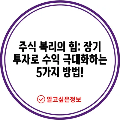 주식 복리의 힘: 장기 투자로 수익 극대화하는 5가지 방법!