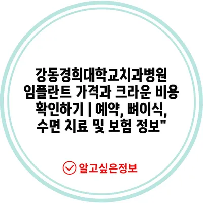 강동경희대학교치과병원 임플란트 가격과 크라운 비용 확인하기 | 예약, 뼈이식, 수면 치료 및 보험 정보에 대한 내용을 알려알려드리겠습니다.