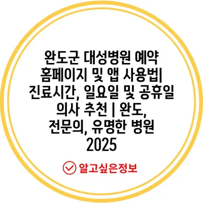 ✅ 완도군 대성병원 예약 시스템을 간편하게 이용해 보세요.