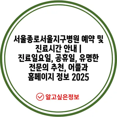 ✅ 서울종로서울지구병원에서의 진료 예약 방법을 지금 바로 알아보세요.
