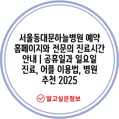 ✅ 서울동대문하늘병원의 진료시간과 예약 방법을 자세히 알아보세요.