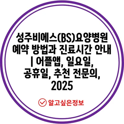 성주비에스(BS)요양병원 예약 방법과 진료시간 공지 | 어플앱, 일요일, 공휴일, 추천 전연락, 2025 에 대해 자주 묻는 질문 TOP 5