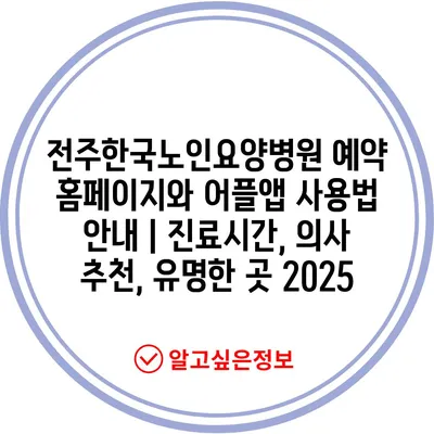 ✅ 전주한국노인요양병원 예약 방법과 꿀팁을 알아보세요!
