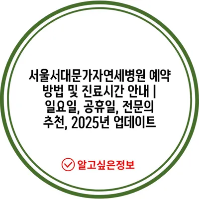 서울서대문가자연세병원 예약 방법 및 진료시간 공지 | 일요일, 공휴일, 전연락 추천, 2025년 업데이트 에 대해 자주 묻는 질문 TOP 5