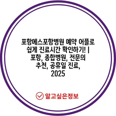 ✅ 포항에스포항병원의 예약과 진료시간을 쉽게 알아보세요!
