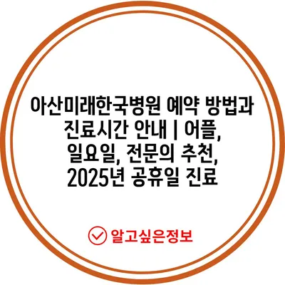 아산미래한국병원 예약 방법과 진료시간 공지 | 어플, 일요일, 전연락 추천, 2025년 공휴일 진료 에 대해 자주 묻는 질문 TOP 5