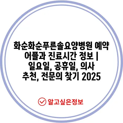 화순화순푸른솔요양병원 예약 어플과 진료시간 정보 | 일요일, 공휴일, 의사 추천, 전연락 찾기 2025 에 대해 자주 묻는 질문 TOP 5