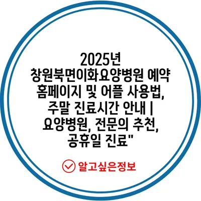 2025년 창원북면이화요양병원 예약 홈페이지 및 어플 사용법, 주말 진료시간 공지 | 요양병원, 전연락 추천, 공휴일 진료” 에 대해 자주 묻는 질문 TOP 5