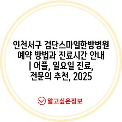 인천서구 검단스마일한방병원 예약 방법과 진료시간 공지 | 어플, 일요일 진료, 전연락 추천, 2025 에 대해 자주 묻는 질문 TOP 5