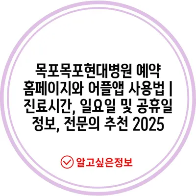 목포목포현대병원 예약 홈페이지와 어플앱 사용법 | 진료시간, 일요일 및 공휴일 정보, 전문의 추천 2025