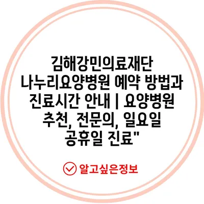 ✅ 김해강민의료재단 나누리요양병원의 예약 방법과 진료시간을 지금 바로 알아보세요.
