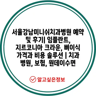 ✅ 서울강남미니쉬치과병원의 임플란트와 뼈이식 정보를 지금 확인해보세요!