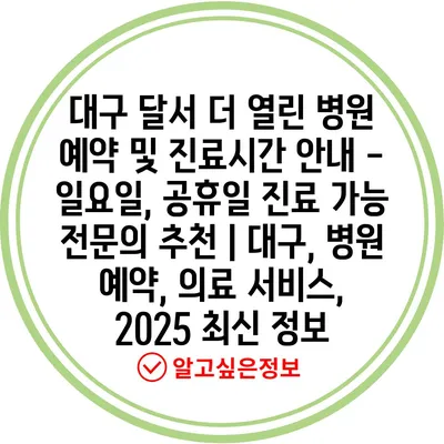대구 달서 더 열린 병원 예약 및 진료시간 공지 – 일요일, 공휴일 진료 가능 전연락 추천 | 대구, 병원 예약, 의료 서비스, 2025 최신 정보 에 대해 자주 묻는 질문 TOP 5