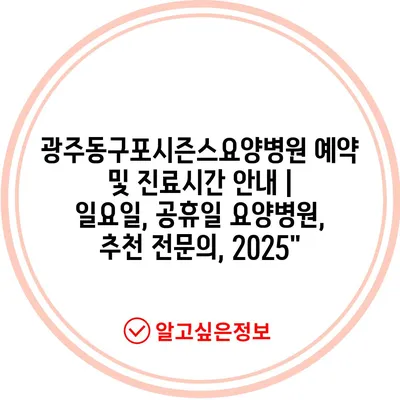 ✅ 광주동구포시즌스요양병원의 진료시간과 예약방법을 알아보세요.