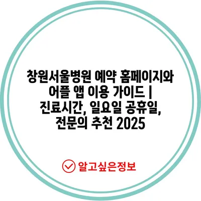 창원서울병원 예약 홈페이지와 어플 앱 이용 가이드 | 진료시간, 일요일 공휴일, 전문의 추천 2025