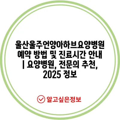 울산울주언양아하브요양병원 예약 방법 및 진료시간 안내 | 요양병원, 전문의 추천, 2025 정보