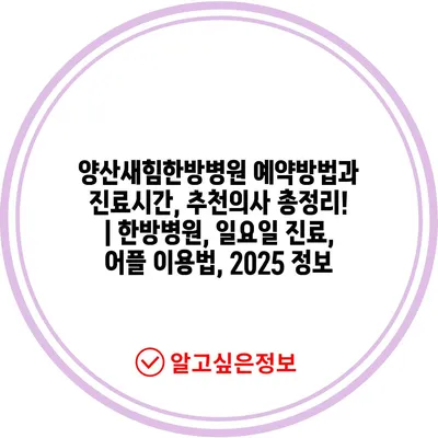 양산새힘한방병원 예약방법과 진료시간, 추천의사 총정리! | 한방병원, 일요일 진료, 어플 이용법, 2025 정보