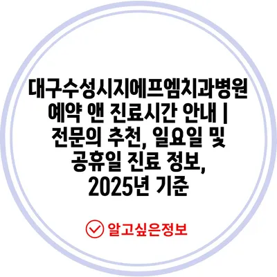 대구수성시지에프엠치과병원 예약 앤 진료시간 안내 | 전문의 추천, 일요일 및 공휴일 진료 정보, 2025년 기준