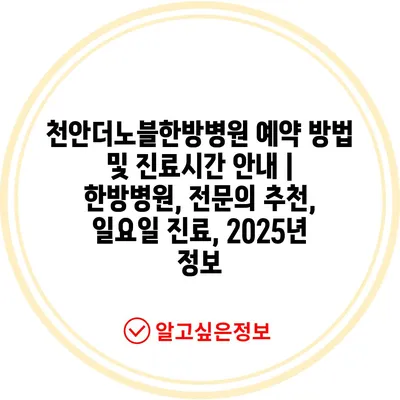 천안더노블한방병원 예약 방법 및 진료시간 안내 | 한방병원, 전문의 추천, 일요일 진료, 2025년 정보
