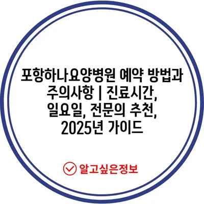 포항하나요양병원 예약 방법과 주의사항 | 진료시간, 일요일, 전문의 추천, 2025년 가이드