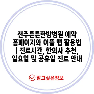 전주튼튼한방병원 예약 홈페이지와 어플 앱 활용법 | 진료시간, 한의사 추천, 일요일 및 공휴일 진료 안내