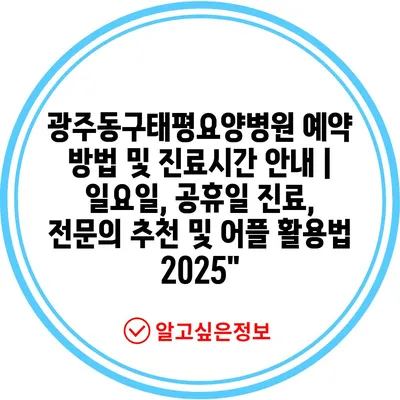 광주동구태평요양병원 예약 방법 및 진료시간 안내 | 일요일, 공휴일 진료, 전문의 추천 및 어플 활용법 2025″