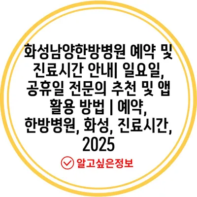 화성남양한방병원 예약 및 진료시간 안내| 일요일, 공휴일 전문의 추천 및 앱 활용 방법 | 예약, 한방병원, 화성, 진료시간, 2025