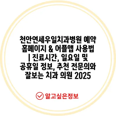 천안연세우일치과병원 예약 홈페이지 & 어플앱 사용법 | 진료시간, 일요일 및 공휴일 정보, 추천 전문의와 잘보는 치과 의원 2025
