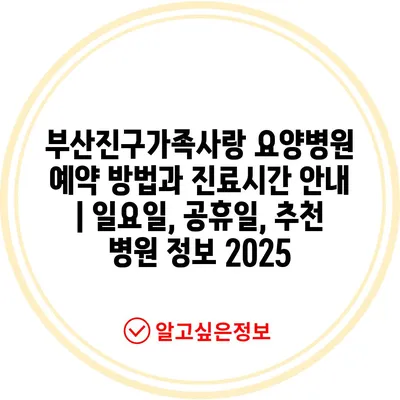 부산진구가족사랑 요양병원 예약 방법과 진료시간 안내 | 일요일, 공휴일, 추천 병원 정보 2025