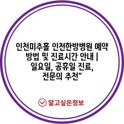 인천미추홀 인천한방병원 예약 방법 및 진료시간 안내 | 일요일, 공휴일 진료, 전문의 추천”