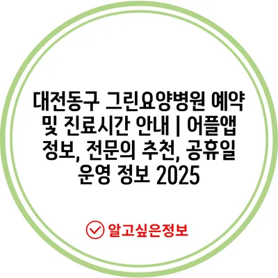 대전동구 그린요양병원 예약 및 진료시간 안내 | 어플앱 정보, 전문의 추천, 공휴일 운영 정보 2025