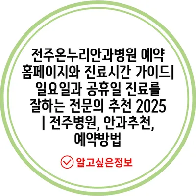 전주온누리안과병원 예약 홈페이지와 진료시간 가이드| 일요일과 공휴일 진료를 잘하는 전문의 추천 2025 | 전주병원, 안과추천, 예약방법