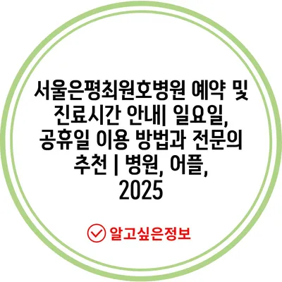 서울은평최원호병원 예약 및 진료시간 안내| 일요일, 공휴일 이용 방법과 전문의 추천 | 병원, 어플, 2025