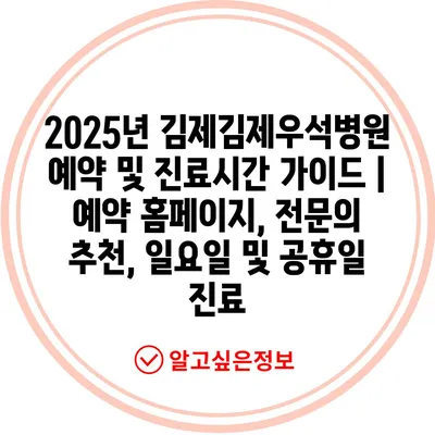 2025년 김제김제우석병원 예약 및 진료시간 가이드 | 예약 홈페이지, 전문의 추천, 일요일 및 공휴일 진료