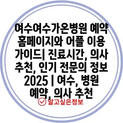 여수여수가온병원 예약 홈페이지와 어플 이용 가이드| 진료시간, 의사 추천, 인기 전문의 정보 2025 | 여수, 병원 예약, 의사 추천
