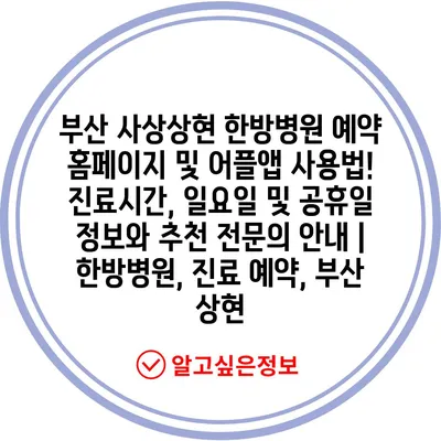 부산 사상상현 한방병원 예약 홈페이지 및 어플앱 사용법! 진료시간, 일요일 및 공휴일 정보와 추천 전문의 안내 | 한방병원, 진료 예약, 부산 상현
